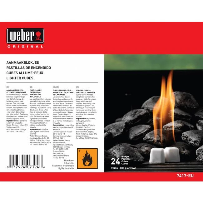 Les cubes allume-feux Weber® constituent donc un excellent moyen d’embraser votre charbon ou vos briquettes. En les associant à la cheminée d’allumage Weber®, vous obtenez un moyen rapide et efficace d’allumer votre barbecue.