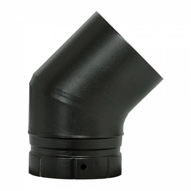 Coude à segment 45° émaillé pour le raccordement entre le poêle et le conduit de cheminée traditionnel.
