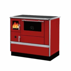 La cuisinière Termorosa DSA dispose d’excellentes finitions. Le revêtement intérieur du foyer et la porte sont composés de fonte. La vitre est en céramique pour assurer une excellente résistance aux hautes températures. Les façades extérieures de la cuisinière sont en acier émaillé.