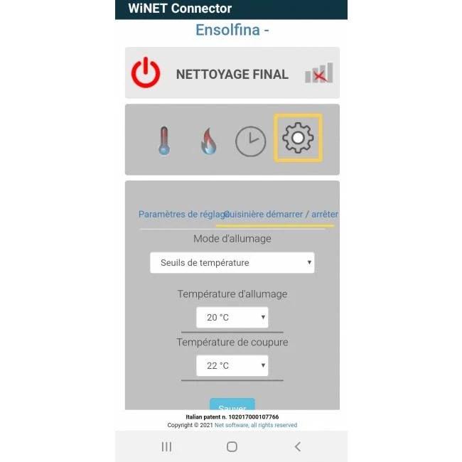 Téléchargez simplement l’application WiNET CONNECTOR sur votre smartphone, votre tablette ou votre PC (disponible sur Android et iOS). Cette application connecte votre smartphone ou votre tablette au boîtier Wifi TOP CHALEUR TYPE M relié à votre poêle.