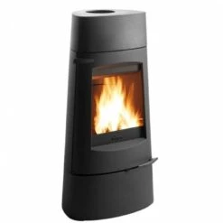 Points forts : Outre ses performances énergétiques, la sobriété et l’originalité des ses lignes, son encombrement réduit au sol, sa grande vitre laissant la part belle au flammes sont les principaux atouts du poêle en fonte ARATOS. |