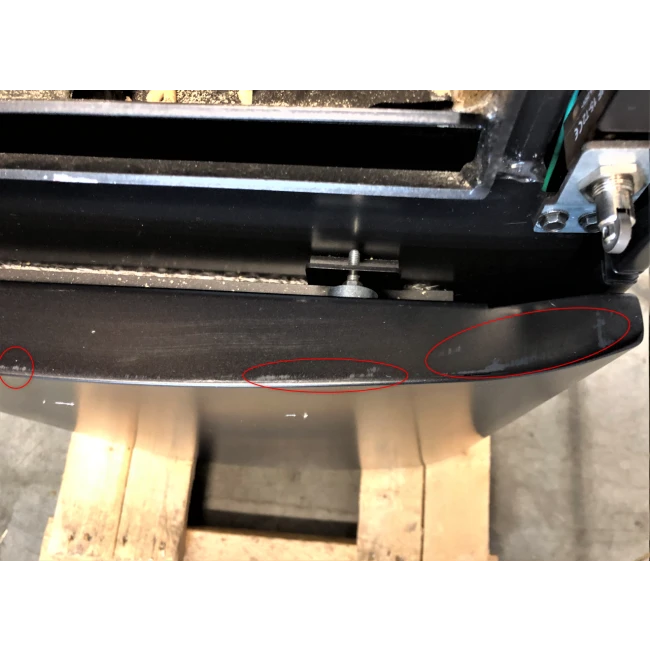 Des rayures ainsi qu’un soulèvement se trouvent sur le bas droit du poêle.